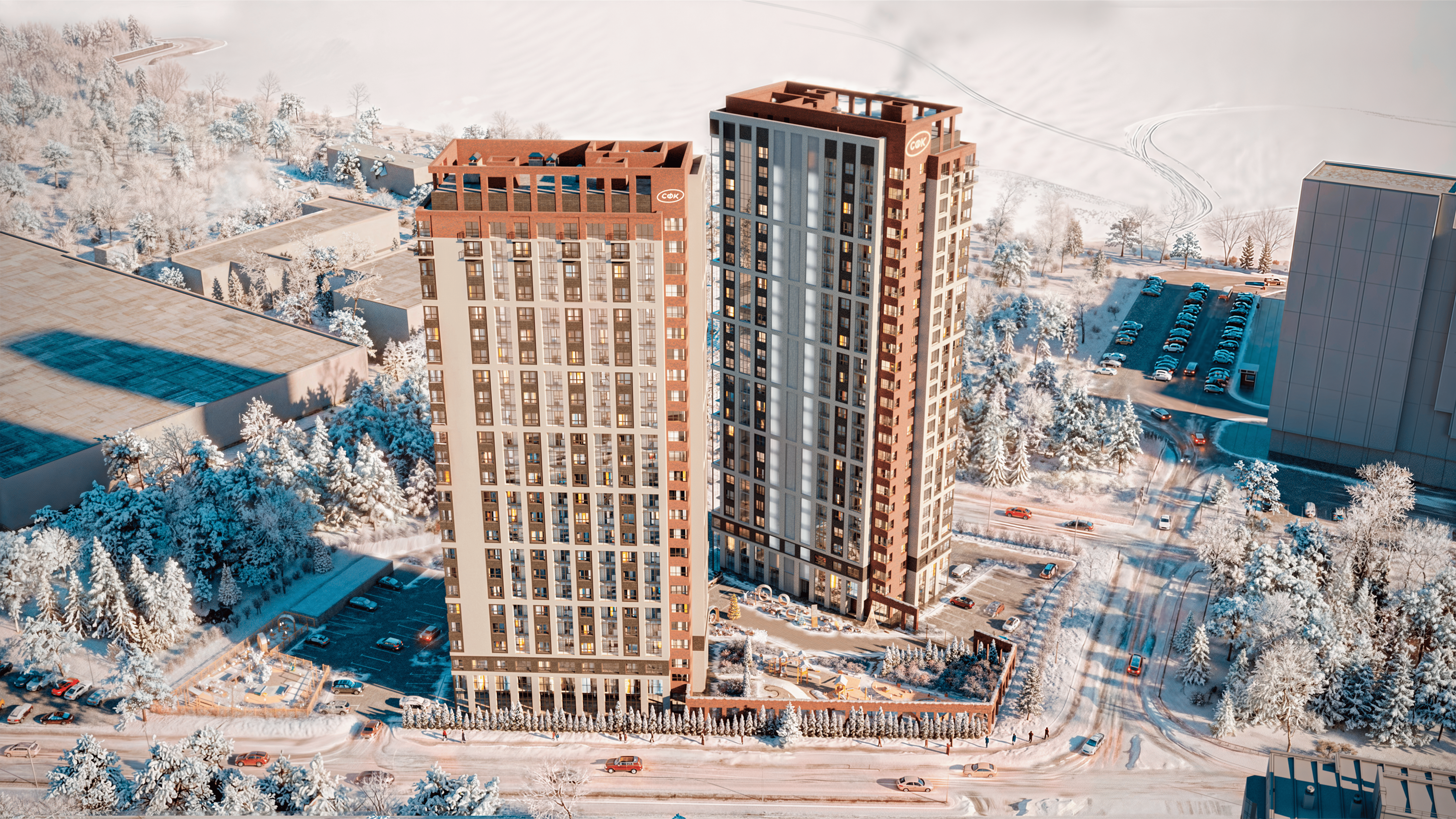 Зимняя визуализация ЖК. В связи со сроками сдачи был активно применен искусственный интеллект.