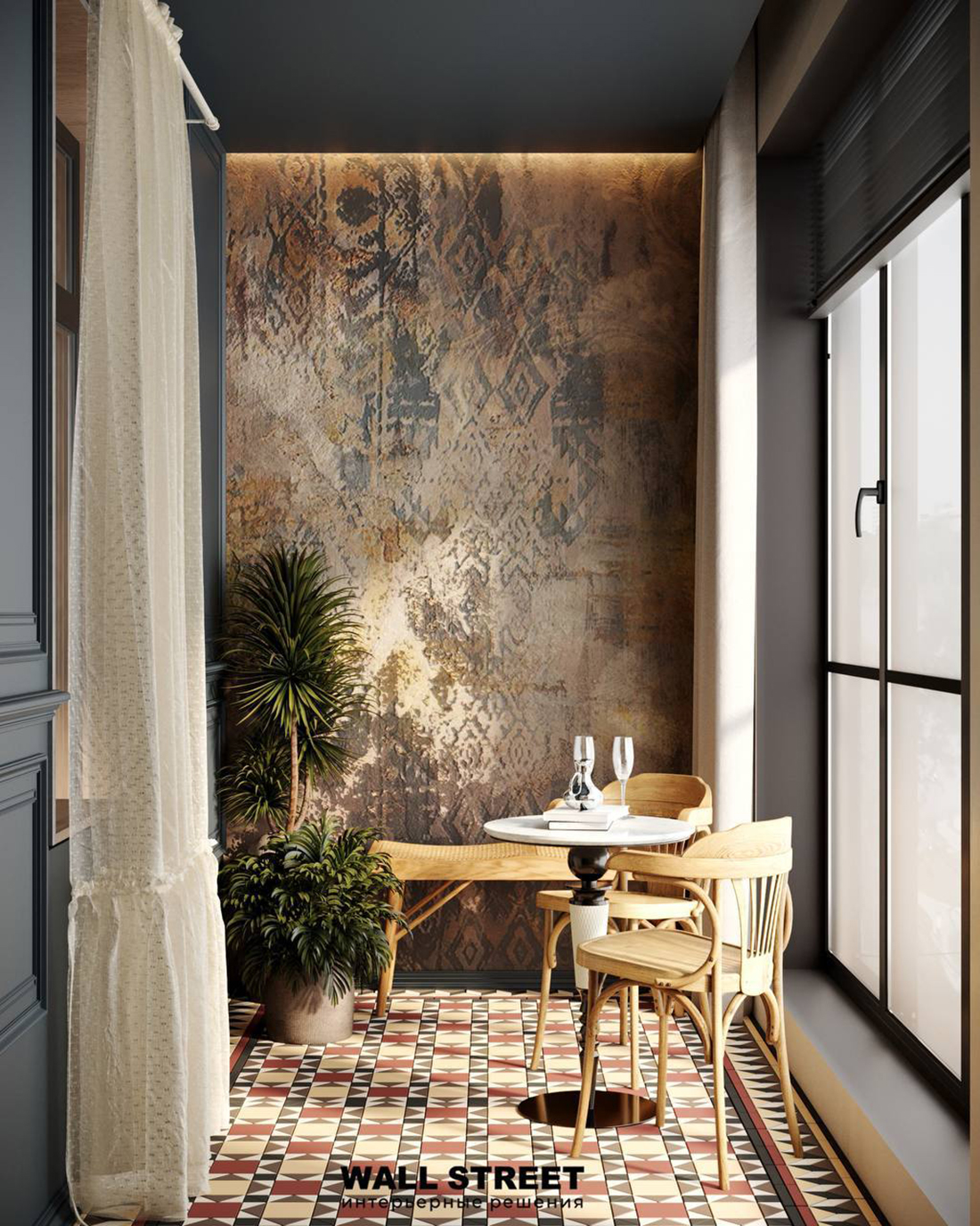 Обои Wall Street в проекте наших дизайнеров. Большой выбор дизайнерских обоев
