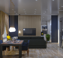 Кухня-гостиная с акцентным цветом