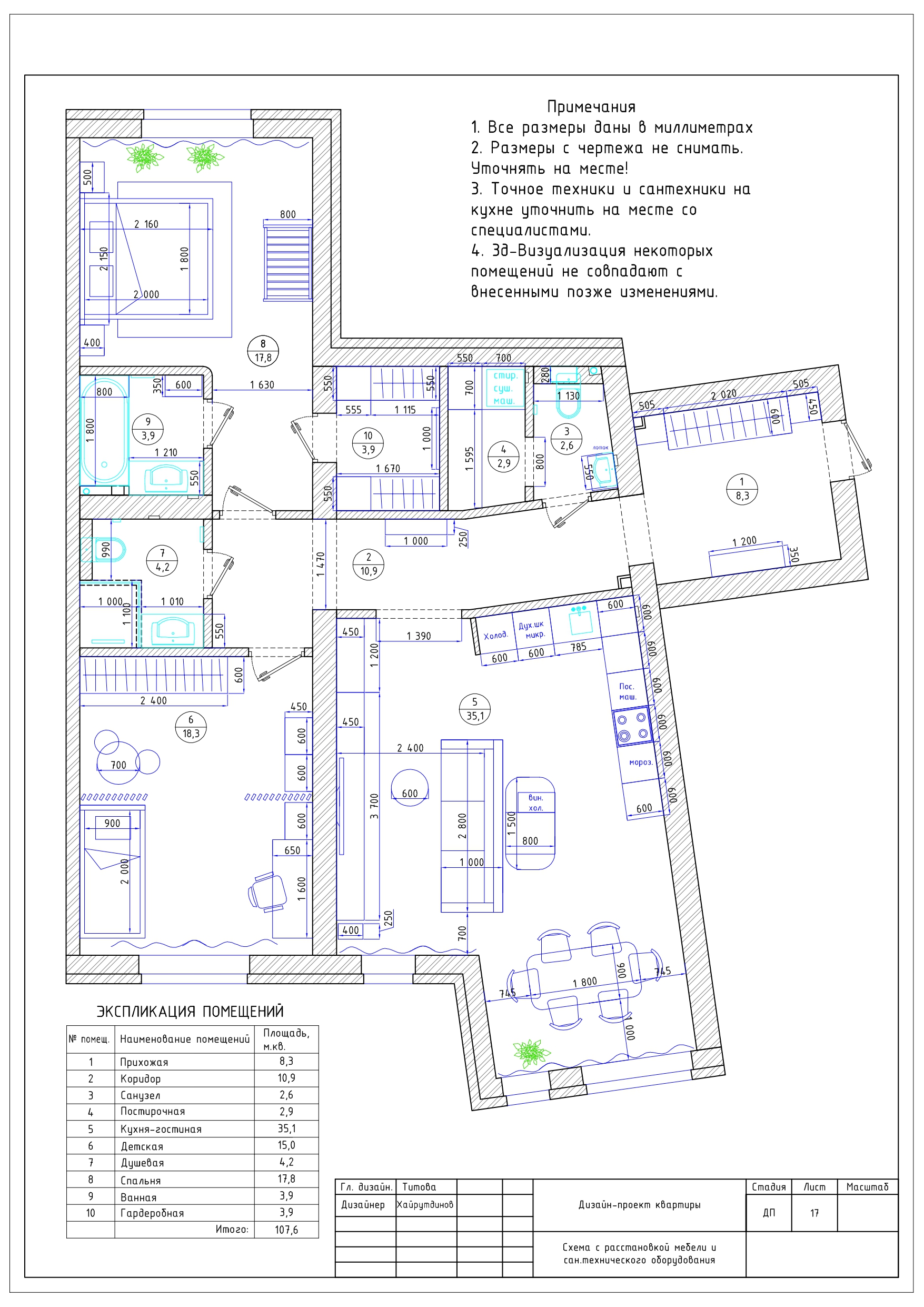 Рабочие чертежи к дизайн-проекту в AutoCad