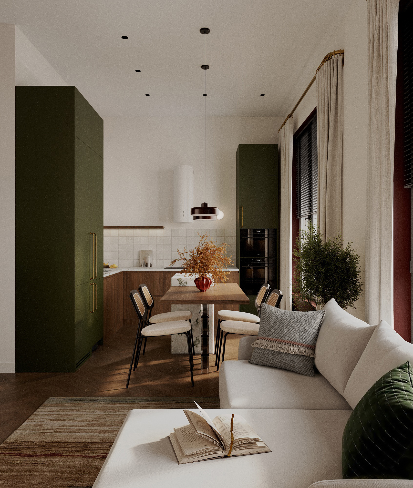 Например, в крайнем проекте(квартира 69м2 стиль:эклектика), зона кухни-гостиной и прихожей 4 дня до первых черновых рендеров.Спальня,СУ,бытовые помещения ~2 дня до первых рендеров.
