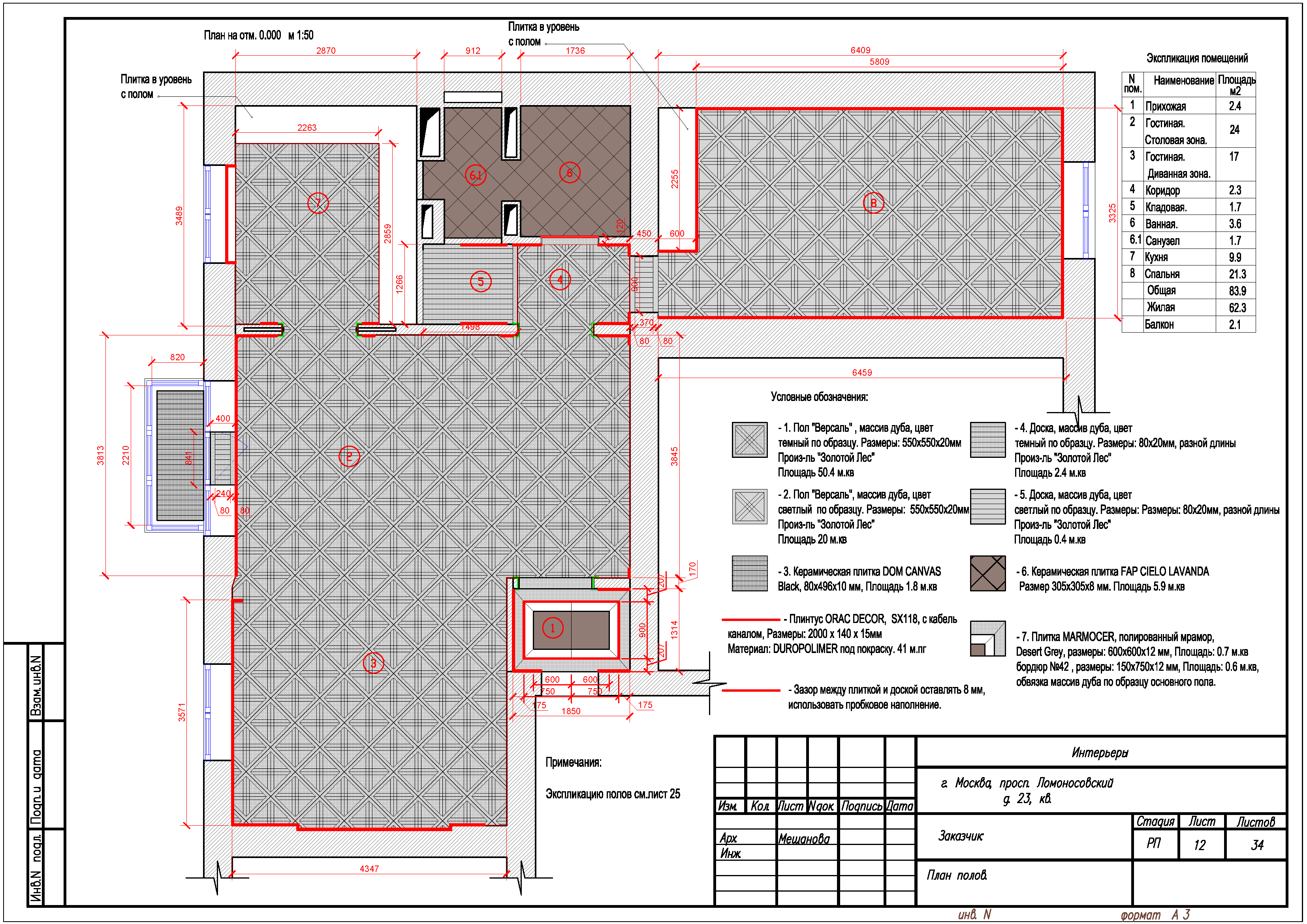 Дизайн интерьера, рабочие чертежи.