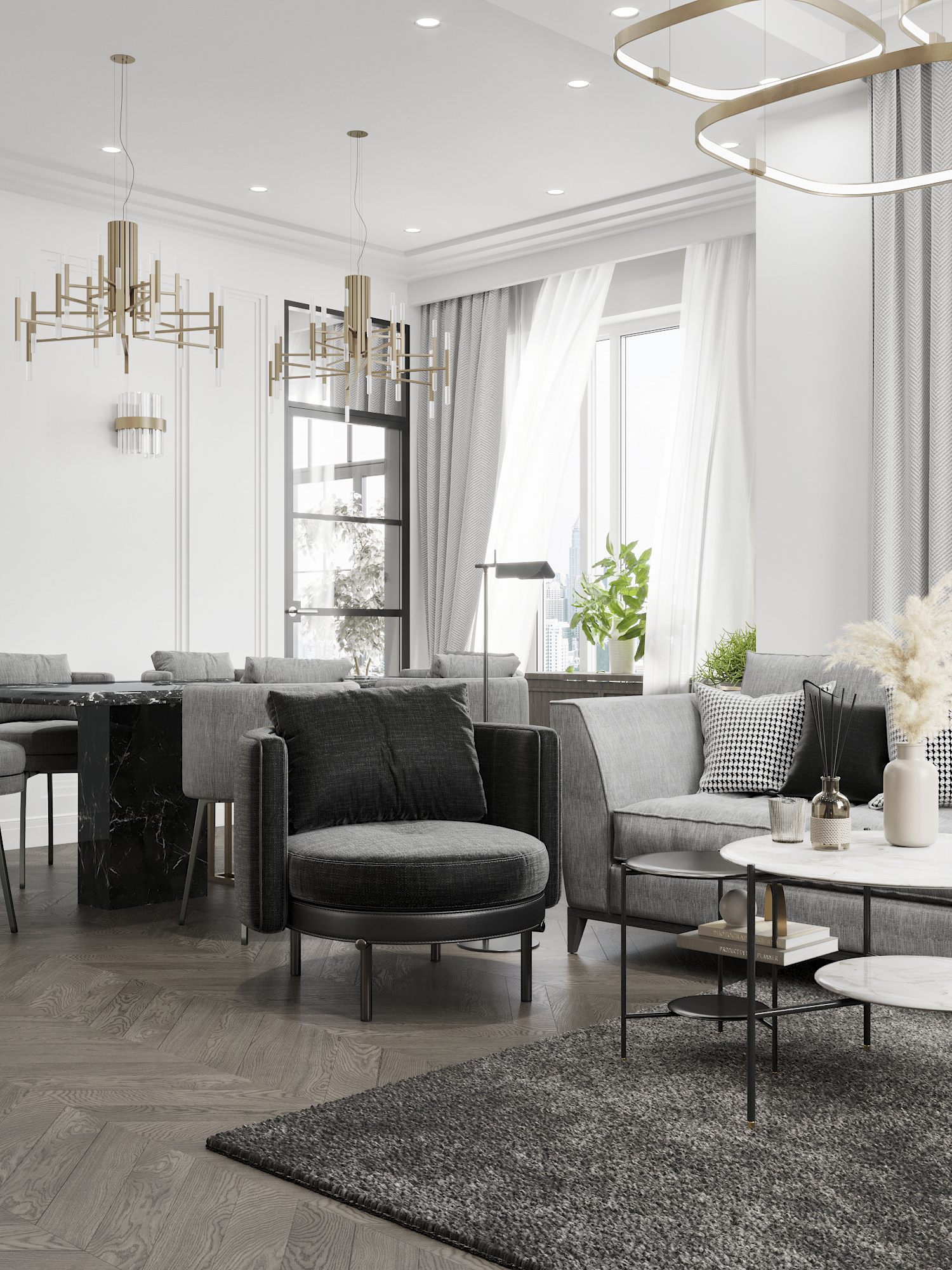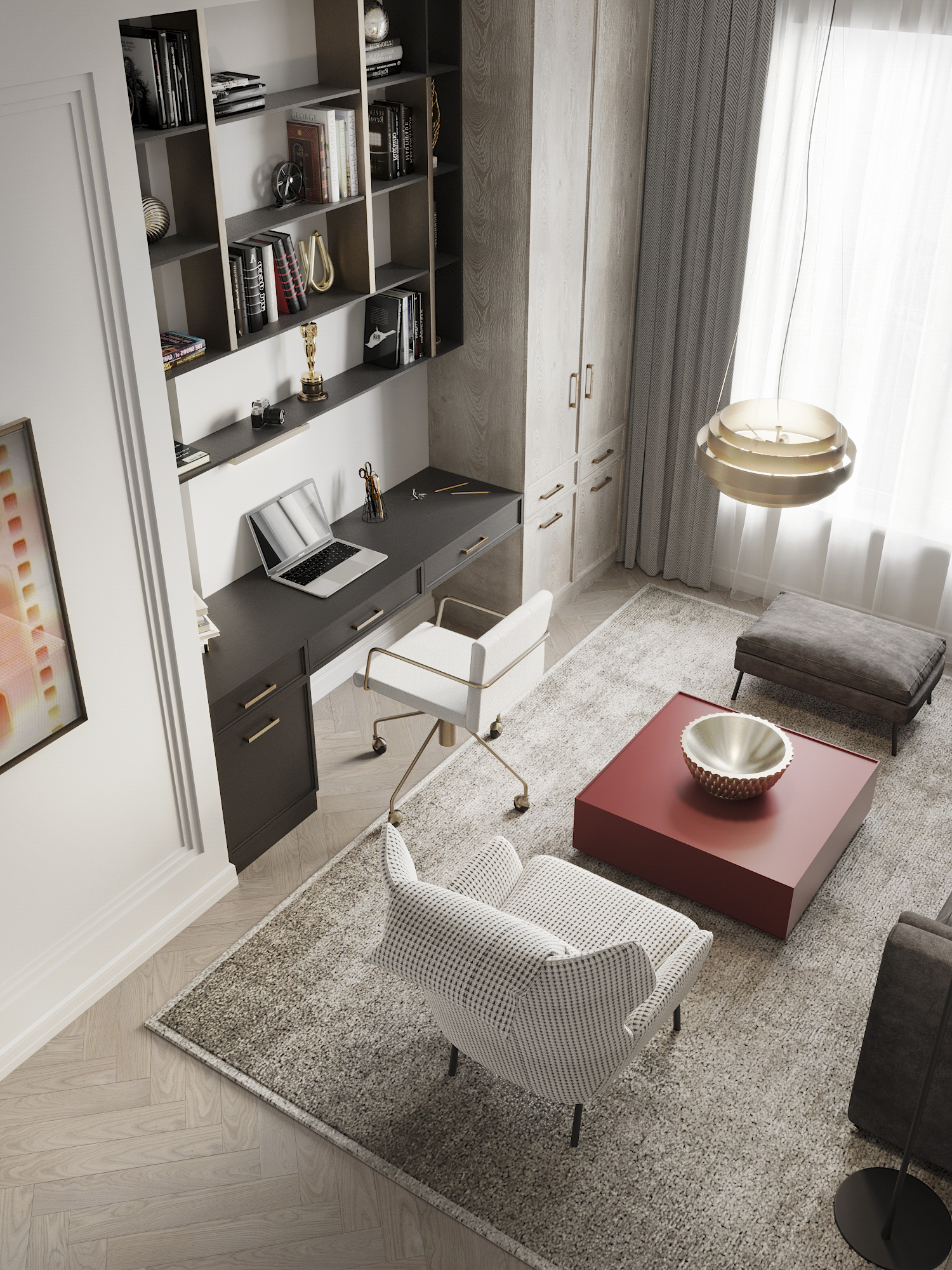 На одну комнату уходит 1 до 2 дней работы вместе с рендером. Зависит от наполнения интерьера.