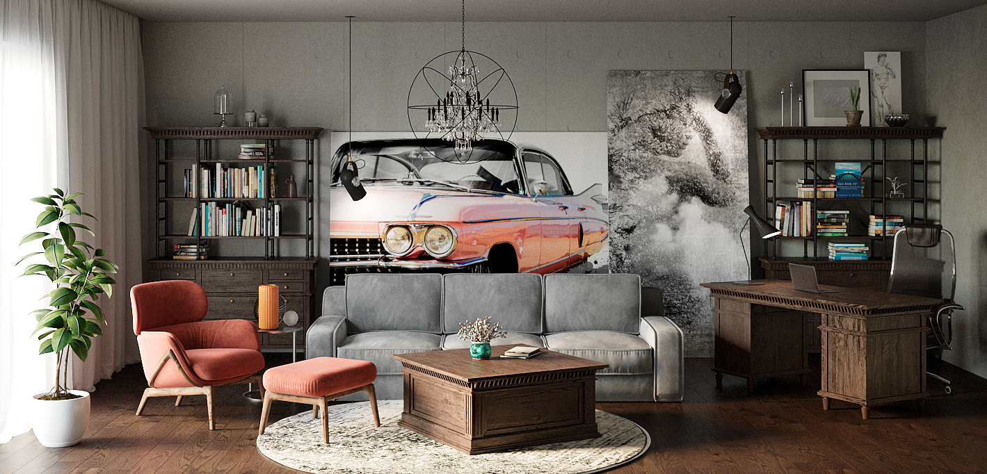Работаю в программах 3D Max + Corona Renderer, делаю постобработку в Adobe Photoshop, делаю панорамы 360.