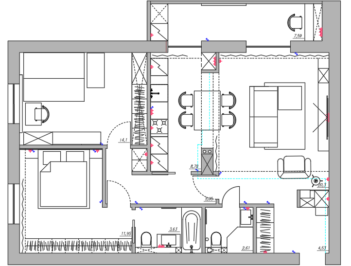 Чертежи в AutoCAD. Планы: обмеры, демонтаж, монтаж, напольные покрытия, потолочные покрытия, выходы электрики, свет, меблировка. Развёртки по дизайн проекту. Изометрия в AutoCAD. Работа и в Archicad. Но нет проектов.