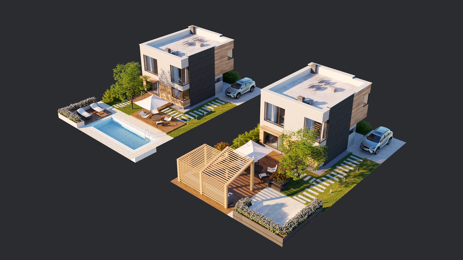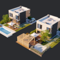 Создание больших проектов для застройщиков - районы, микрорайоны. Создание экстерьерных композиций, моделирование и визуализирование частных домов, проектов, парков.