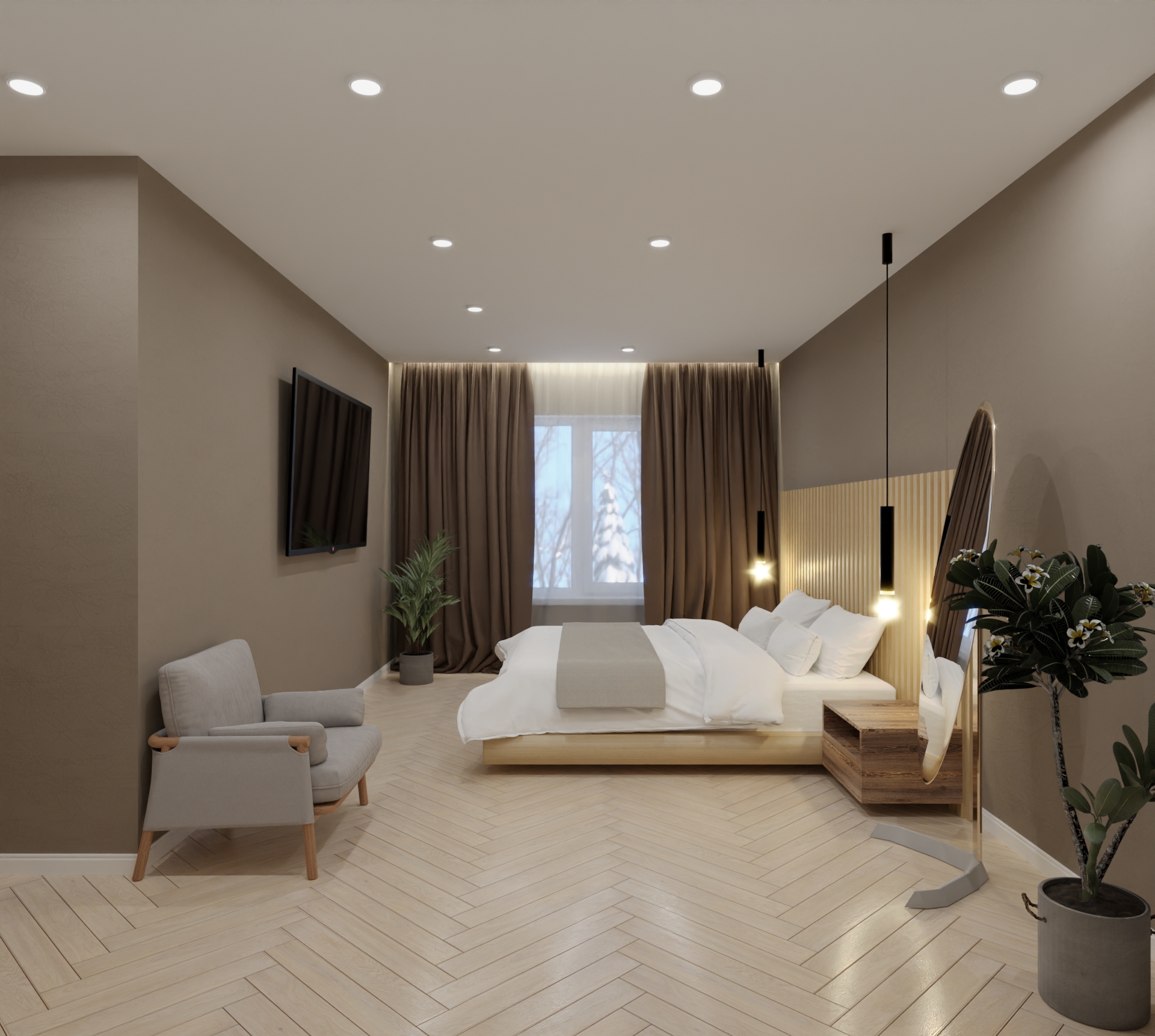 - 3-10 рендеров на помещение (финальных изображений) - зависит от наполнения помещения.