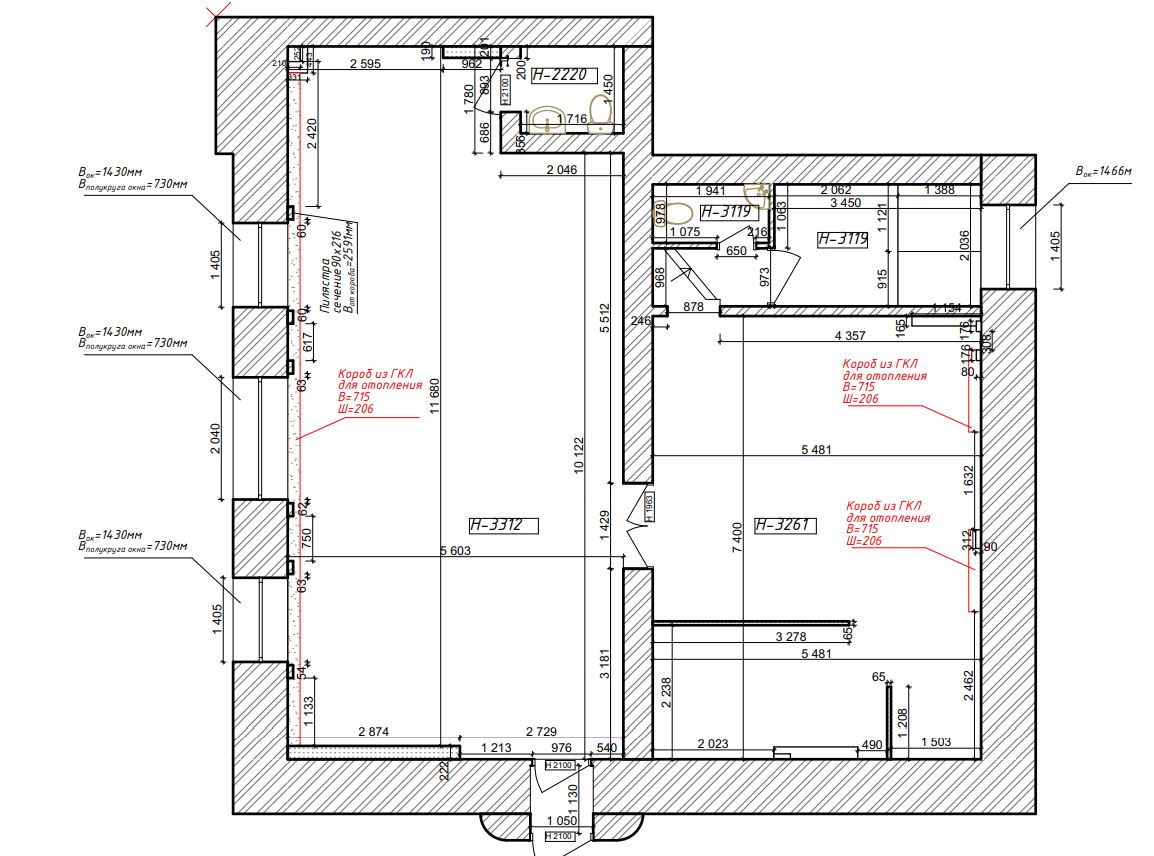 Выезд на замеры, вычерчивание планов