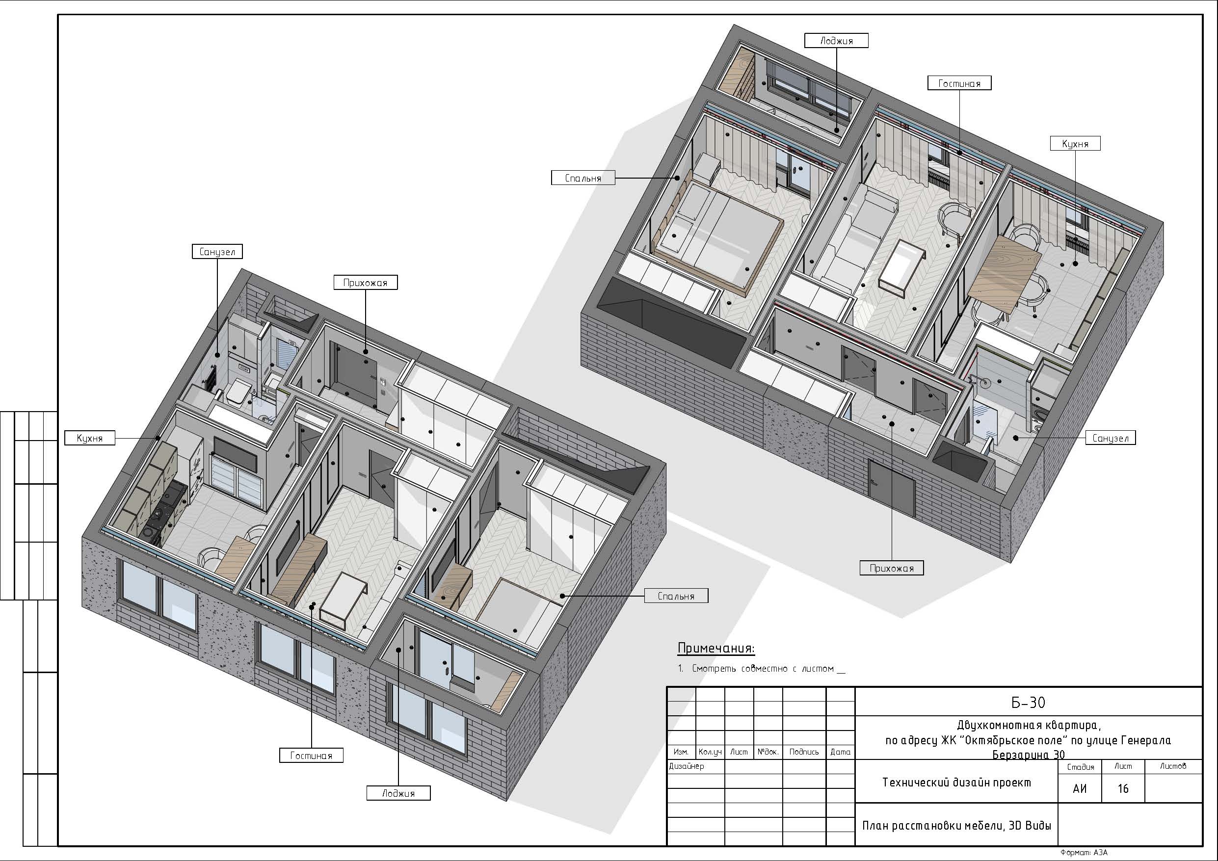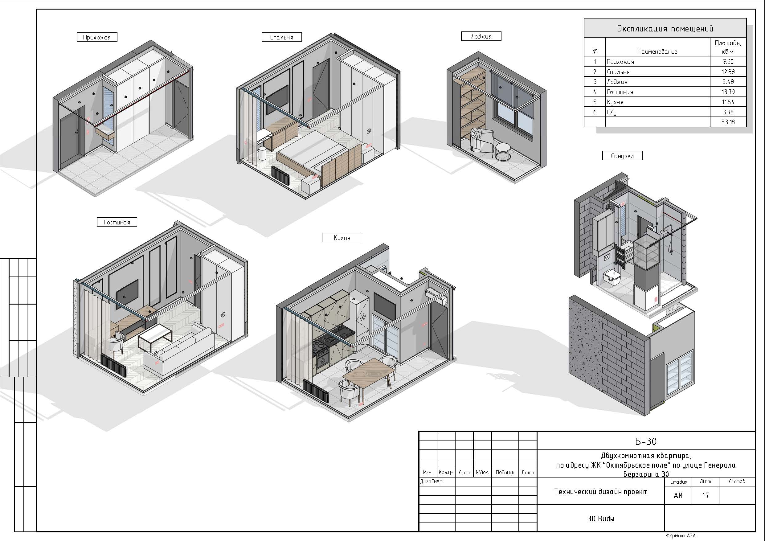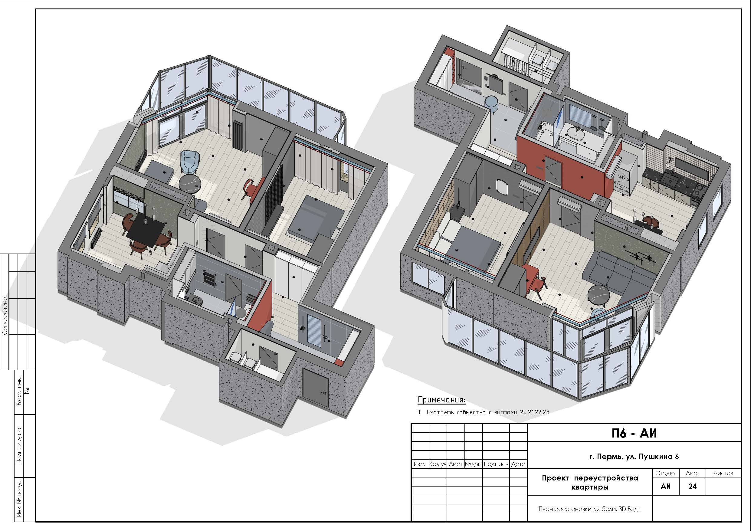 Проект разрабатывается в современной программе Revit и включает в себя понятные 3D схемы помещений и мебели, подсчет любых материалов.