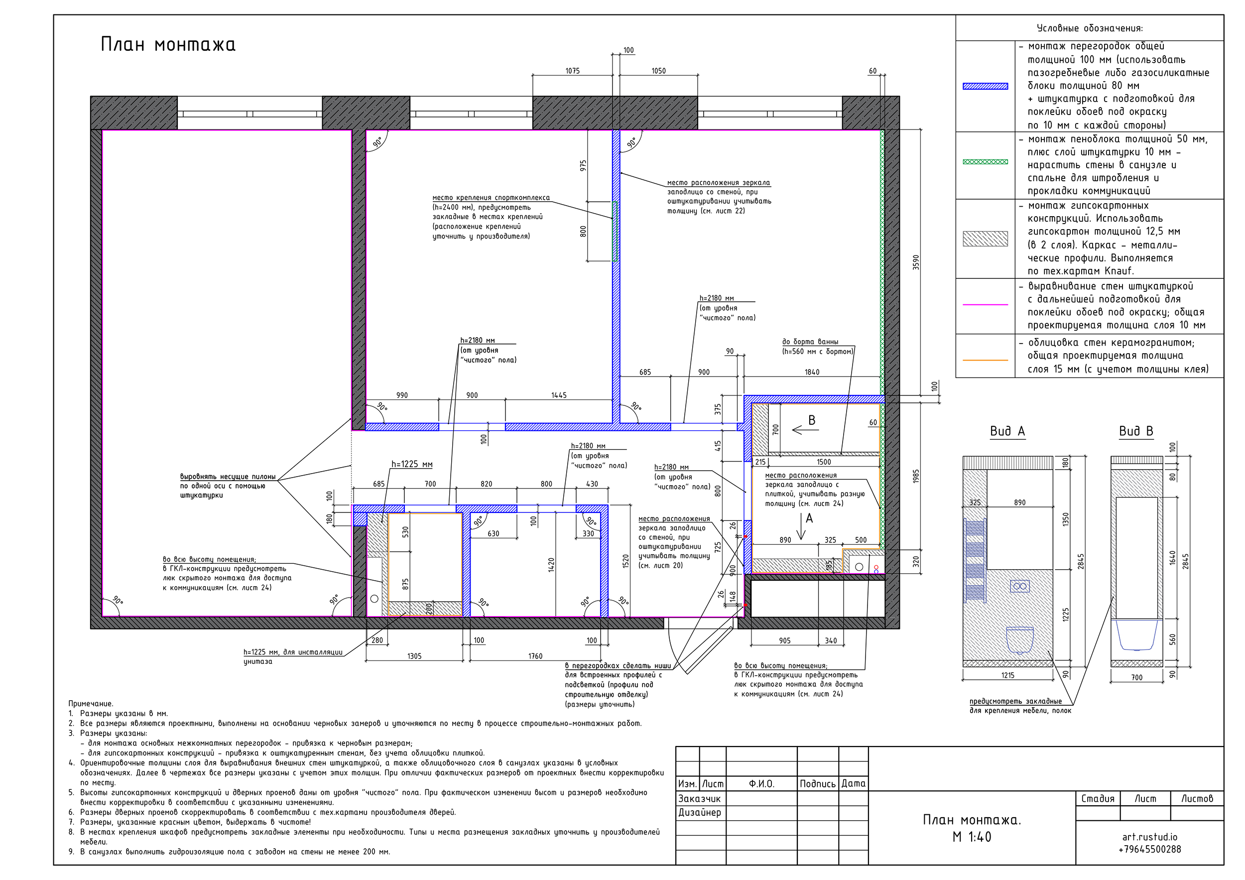 - ссылки на отделочные материалы, светильники и др. элементы, которые важно отобразить на чертежах.
