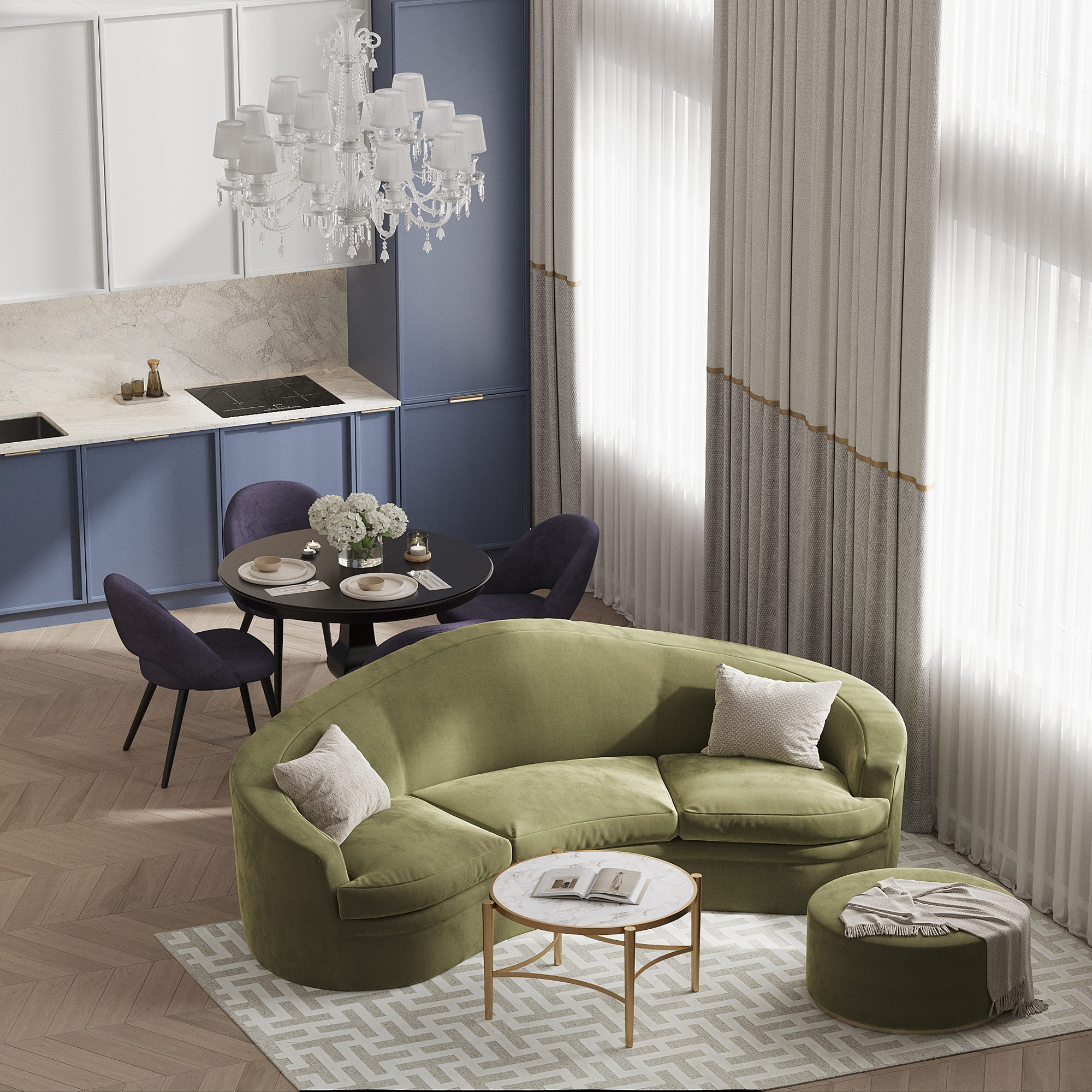 В стоимость включены до 2-х правок после первой визуализации, 4-5 ракурсов на помещение.