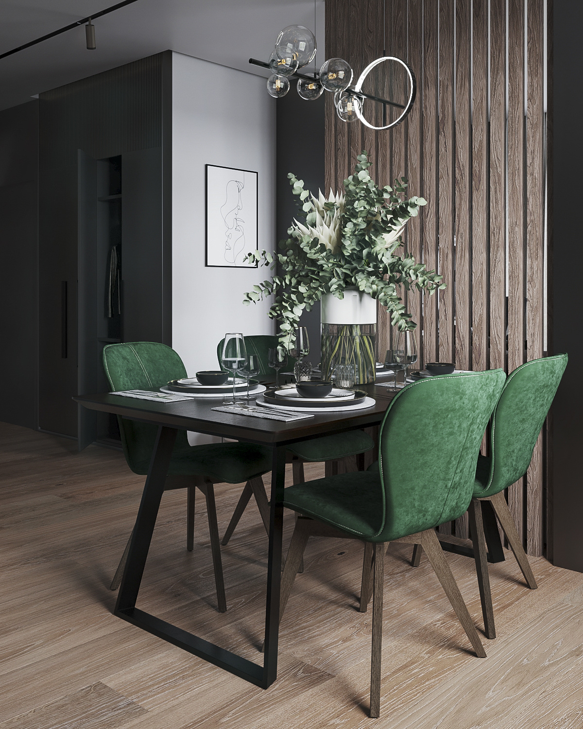 Создание и наполнение помещения объектами, базовое моделирование, работа со светом, ракурсами и текстурами в 3Ds max + Corona renderer, постобработка рендеров в Photoshop при необходимости