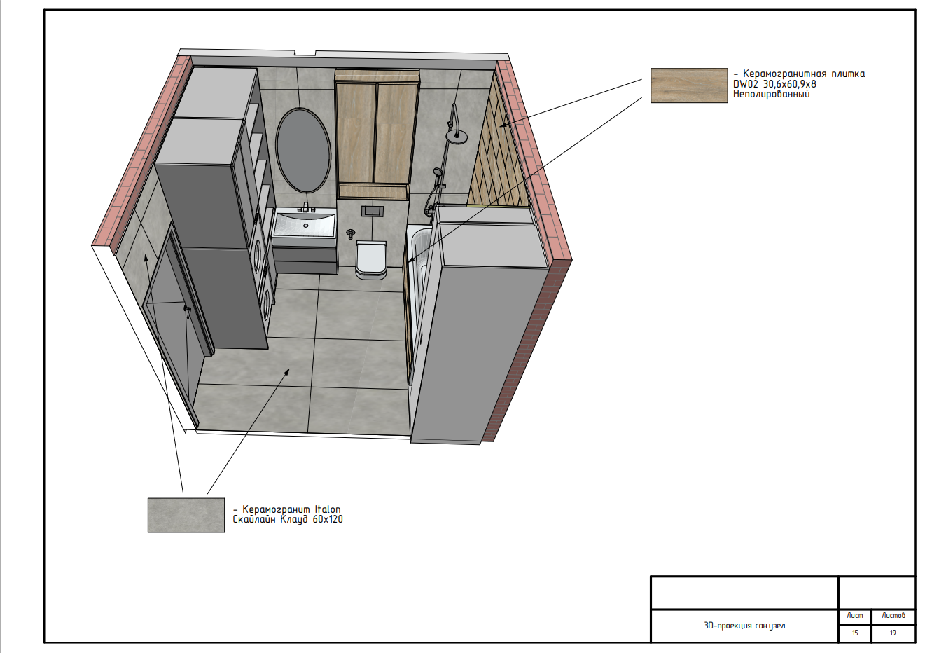 * 3D-проекции сан.узла, + 2 по вашему усмотрению.