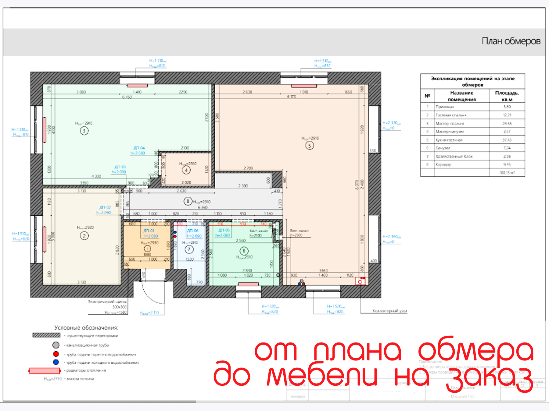 -Отдельные планы: электрика, расстановка мебели, обмерный план.