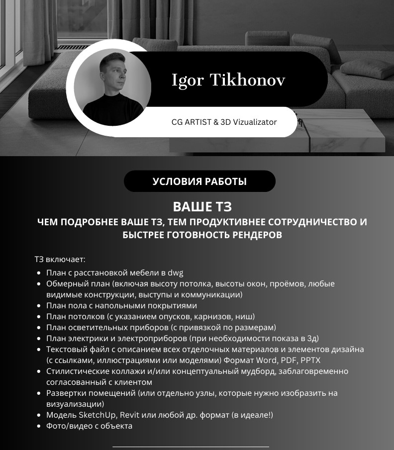 • Оплата в 2 этапа, аванс - 50%, остаток 50% по готовности финальных рендеров.