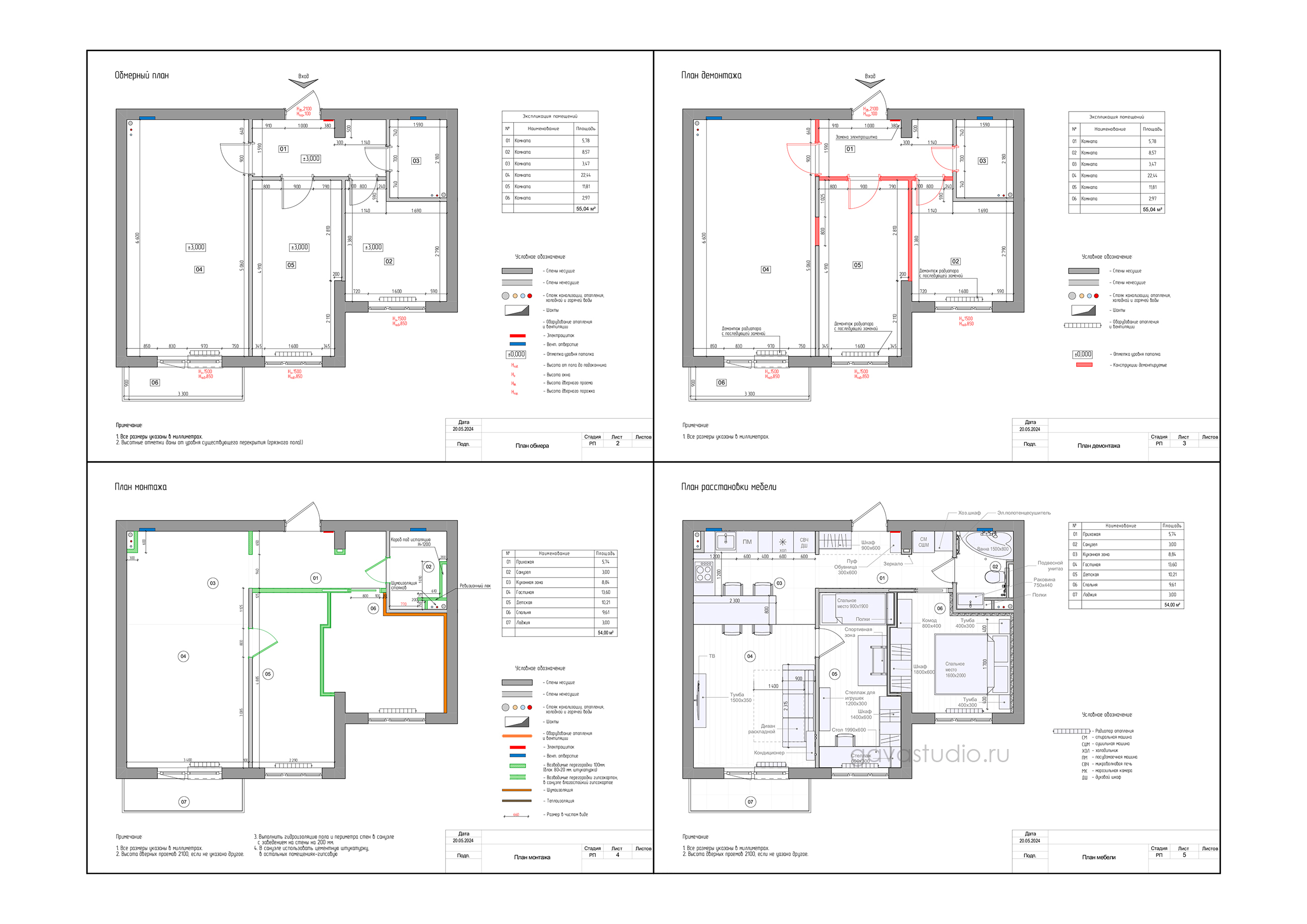 Возможна разработка основных планов, включающих обмерный, возведения стен, планов по электрике.