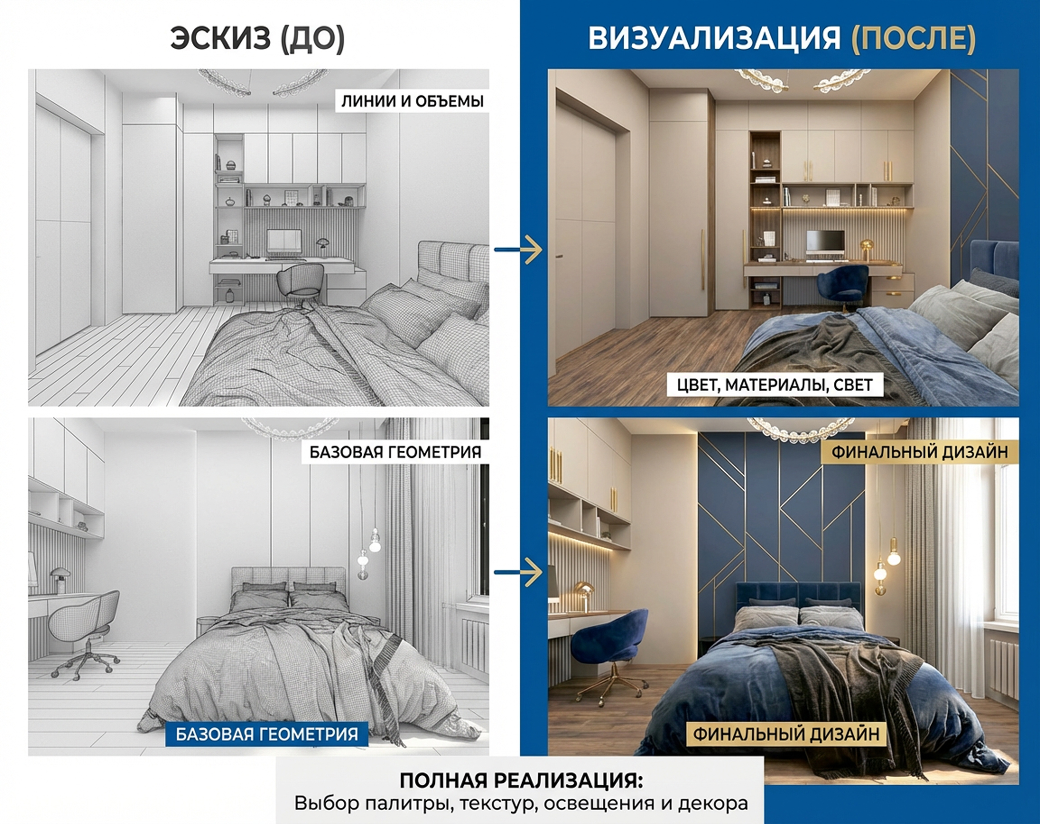 AI-визуализация архитектуры и интерьеров • Фотореалистичные рендеры по эскизу, фото или 3D • Создание интерьерных визуализаций по мудбордам • 10+ цветовых концепций фасадов и помещений • Редизайн интерьеров и фасадов • Создание дополнительных ракурсов без 3D-моделирования • Воссоздание масштабных экстерьеров по Google Maps • Улучшение качества рендеров (Upscale, детализация) • Изменение времени суток и сезона (день/ночь/зима/лето) • Добавление или удаление объектов в сцене (люди, авто, декор, ландшафт) • Обновление старых визуализаций для портфолио • Классическое 3D-моделирование и постобработка • Ведение проекта от идеи до финальной подачи