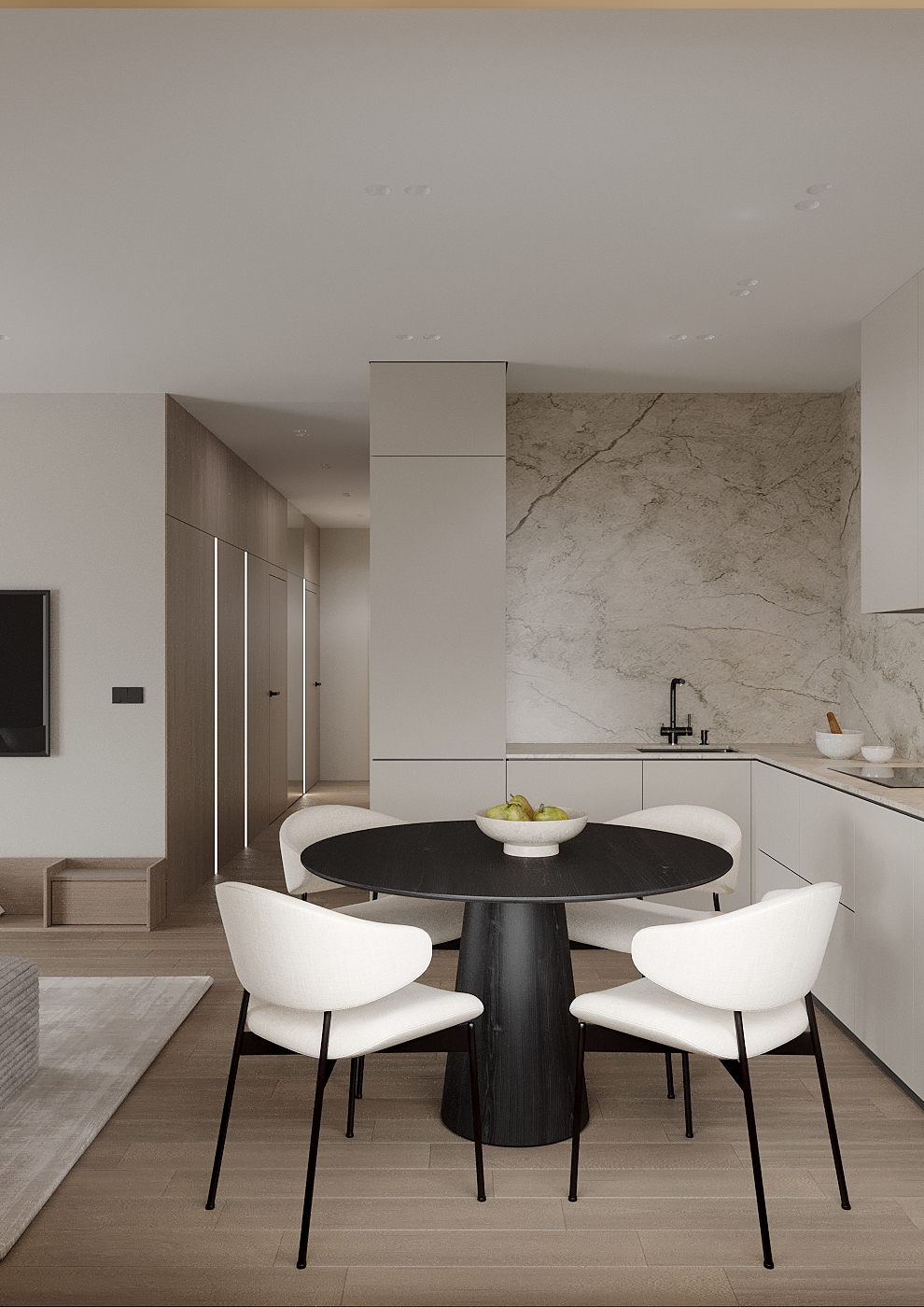 Настраиваю материалы и освещение индивидуально под каждую сцену. Выстраиваю корпусную мебель с нуля.