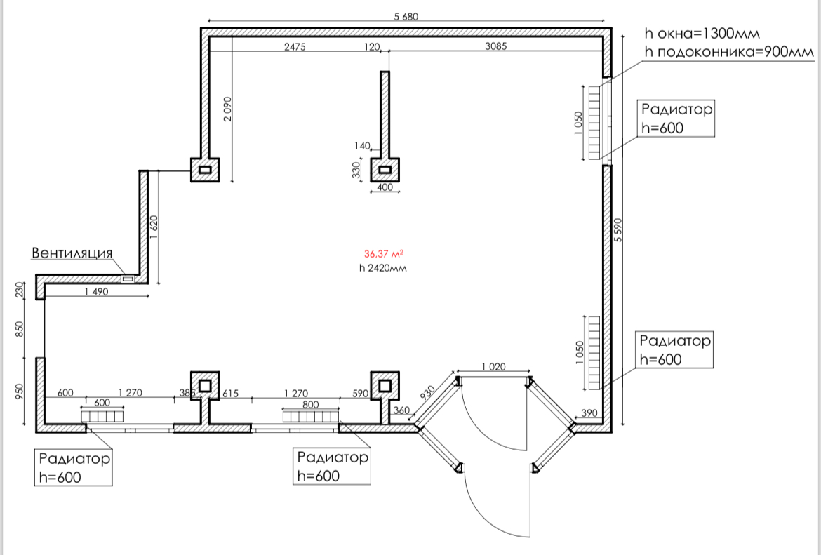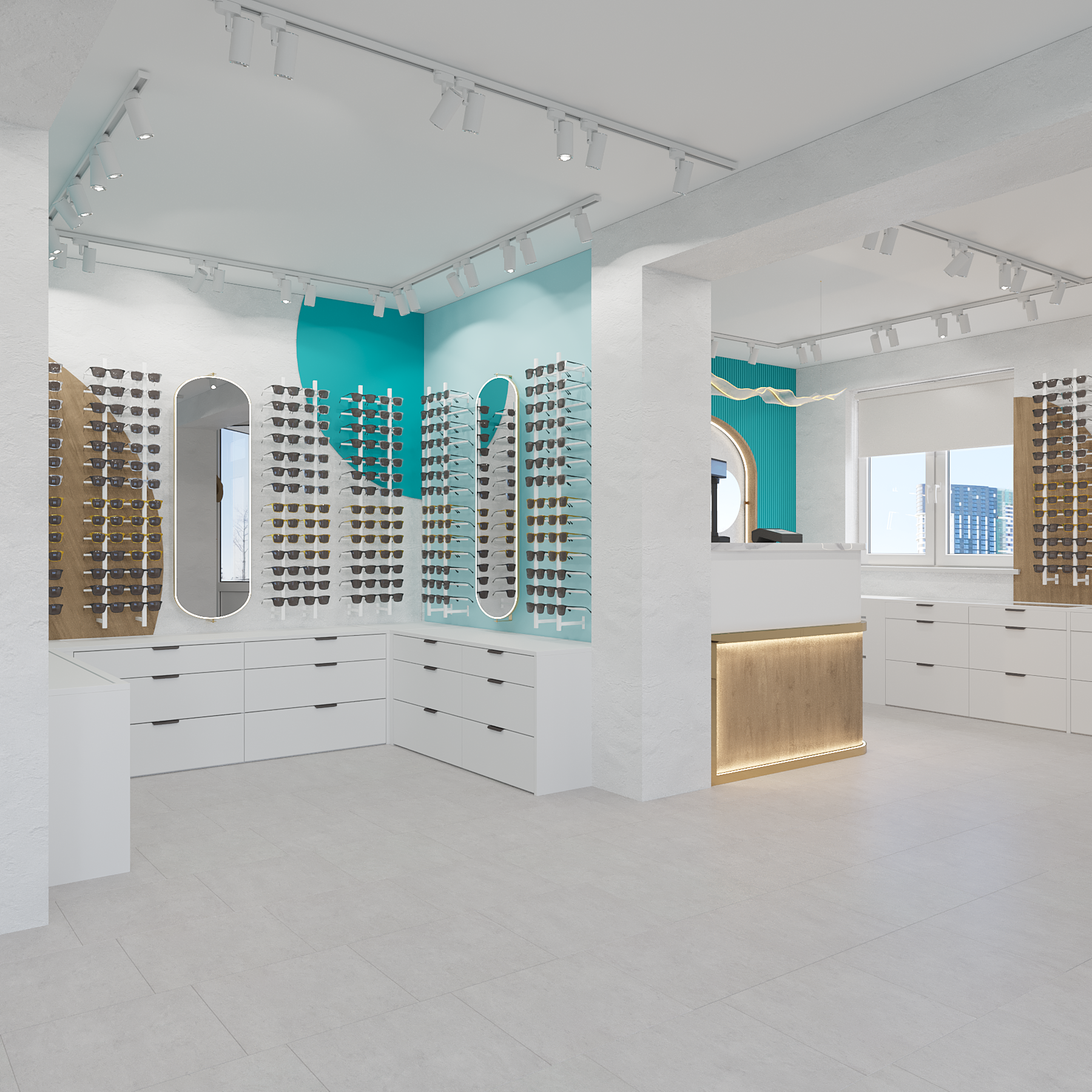 Начертить рабочую документацию для магазина оптики 36м2