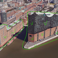 Основное здание, это Эльбская Филармония. Нужны только два фасада, которые будут повернуты к камере.
