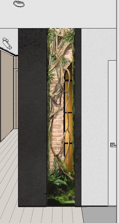 Создать 3д модель внутреннего пространства террариума для хамелеона по эскизу и согласно заданным габаритам для дальнейшего использования в визуализации интерьера.