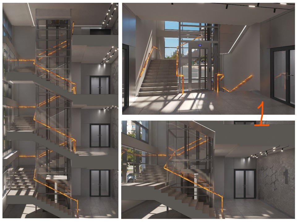 Необходимо по готовой болванке из 3д макса довести лестницу до хорошего рендера+ правки 20%к объему + ночное освещение на 2 ракурсах. Прилагаю фото модели, которую нужно довести до ума . Качестов рендера которое необходимо так же прилагаю.