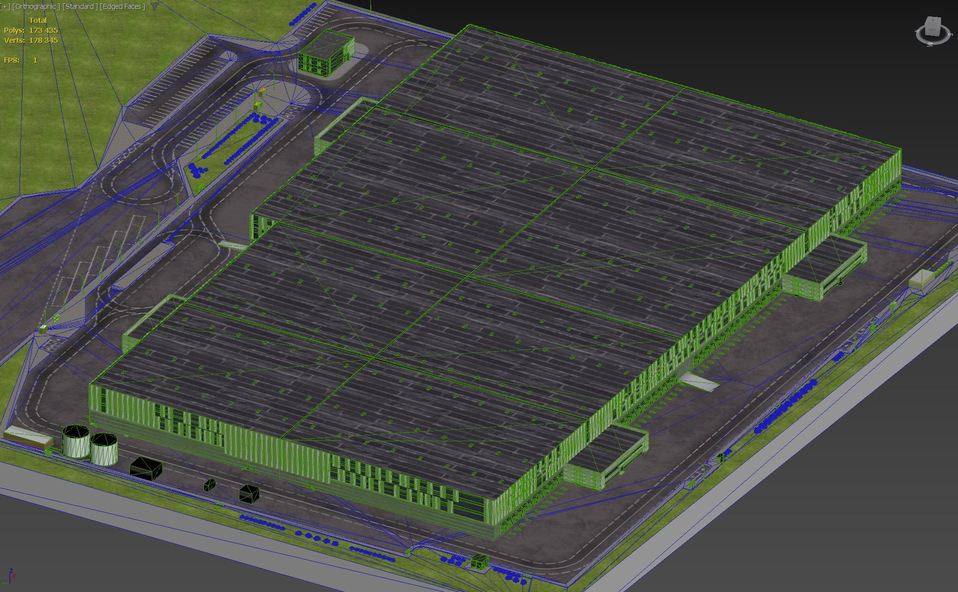 Нужно сделать высокополигональную модель для АГР складского комплекса.