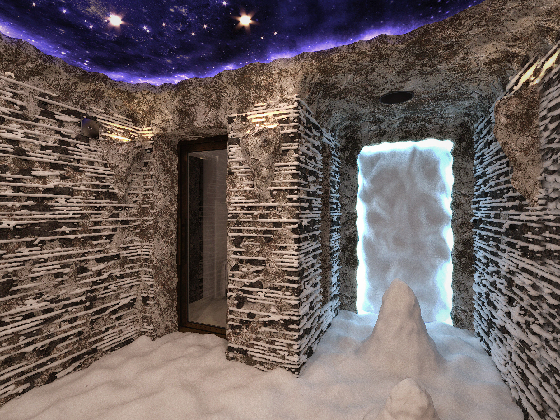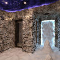 Делаю помещение снежного грота, где на скалах из камня лежит снег.
