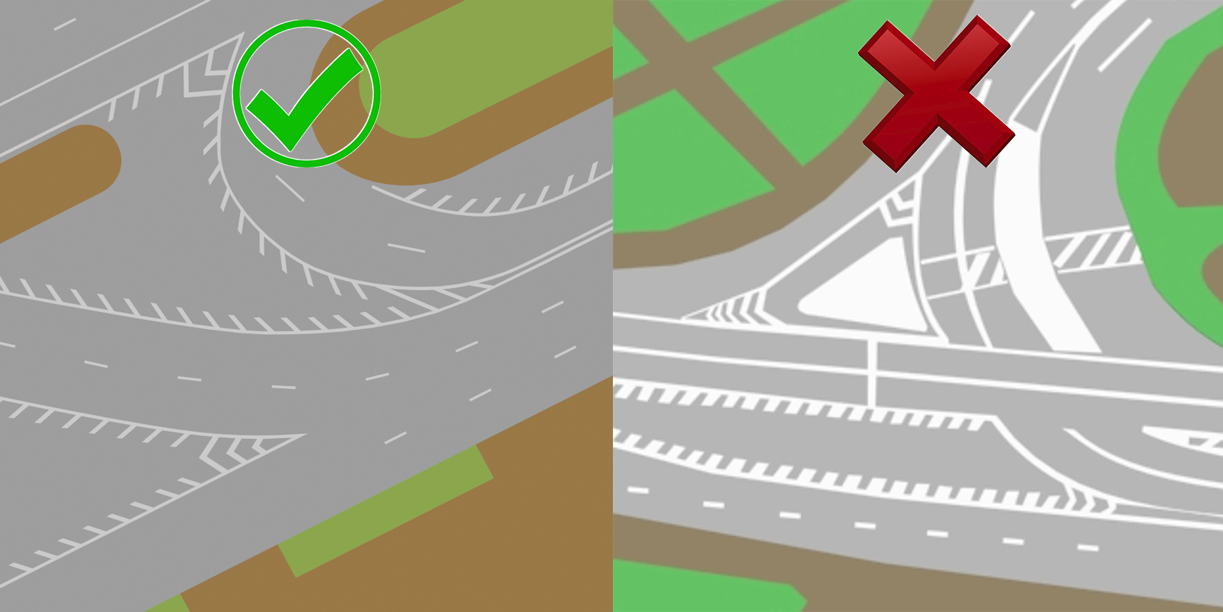- Дороги и тротуары четко разделять на два типа поверхности** даже если оба сделаны асфальтом. По чему ездят авто в один тип по чему ходят люди в другой тип. При этом можно допустить несколько типов тротуаров и разделять дороги на два три типа.