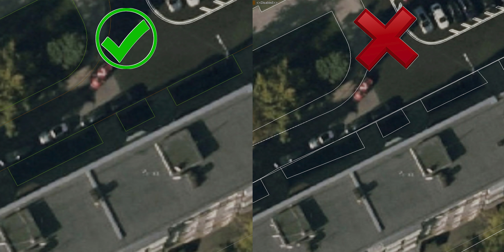 - Места где контур дороги, тротуара не видно на подложке нужно посмотреть на панораме и сделать максимально похожим и аккуратным. Если информацию не узнать и нигде не видно то делаем условно похоже.