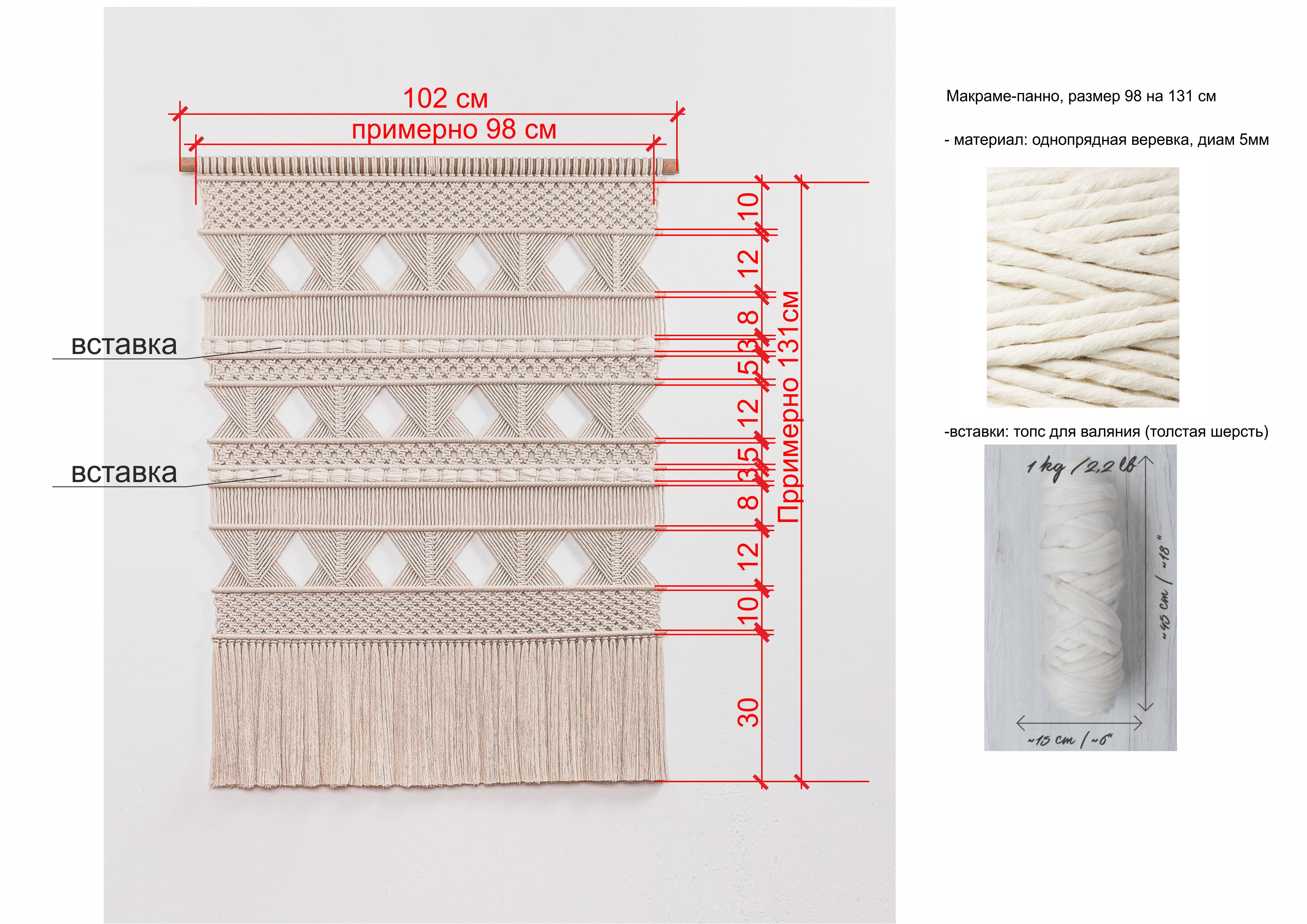 Декоративное панно в технике макраме. Все подробности в прикрепленном файле. Прошу указать стоимость и сроки работы.