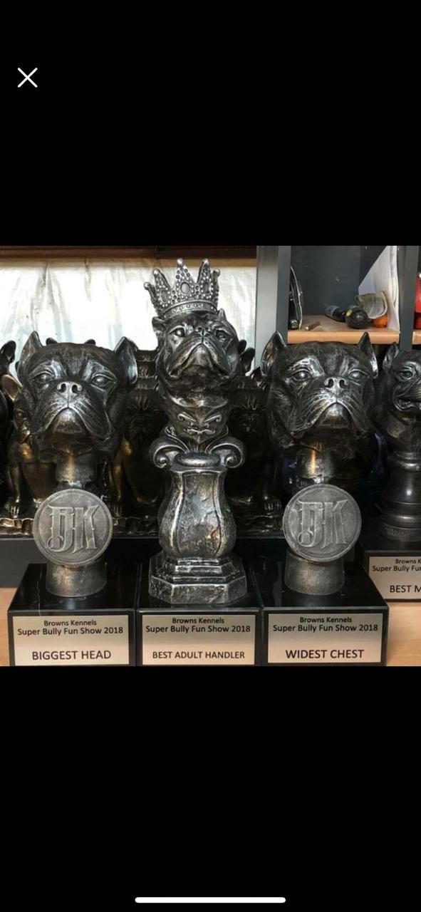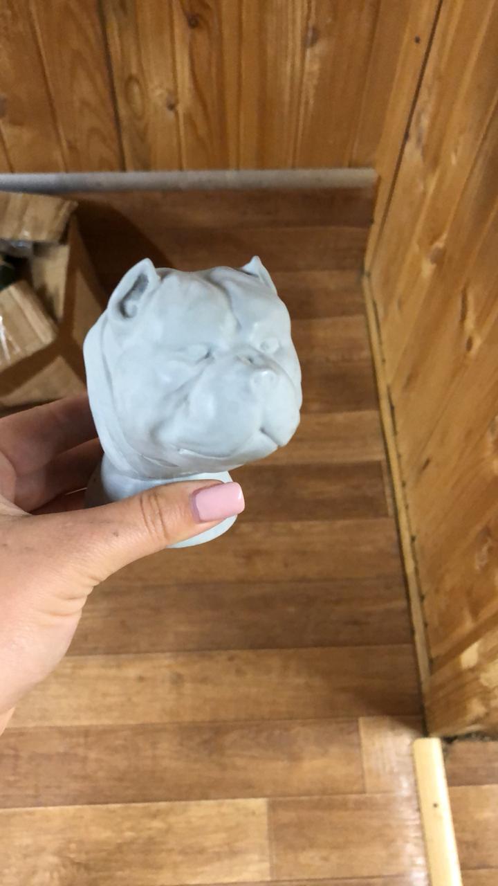 Голова собак, породы американский булли с человеческим гипертрофированным бюстом и рогами.