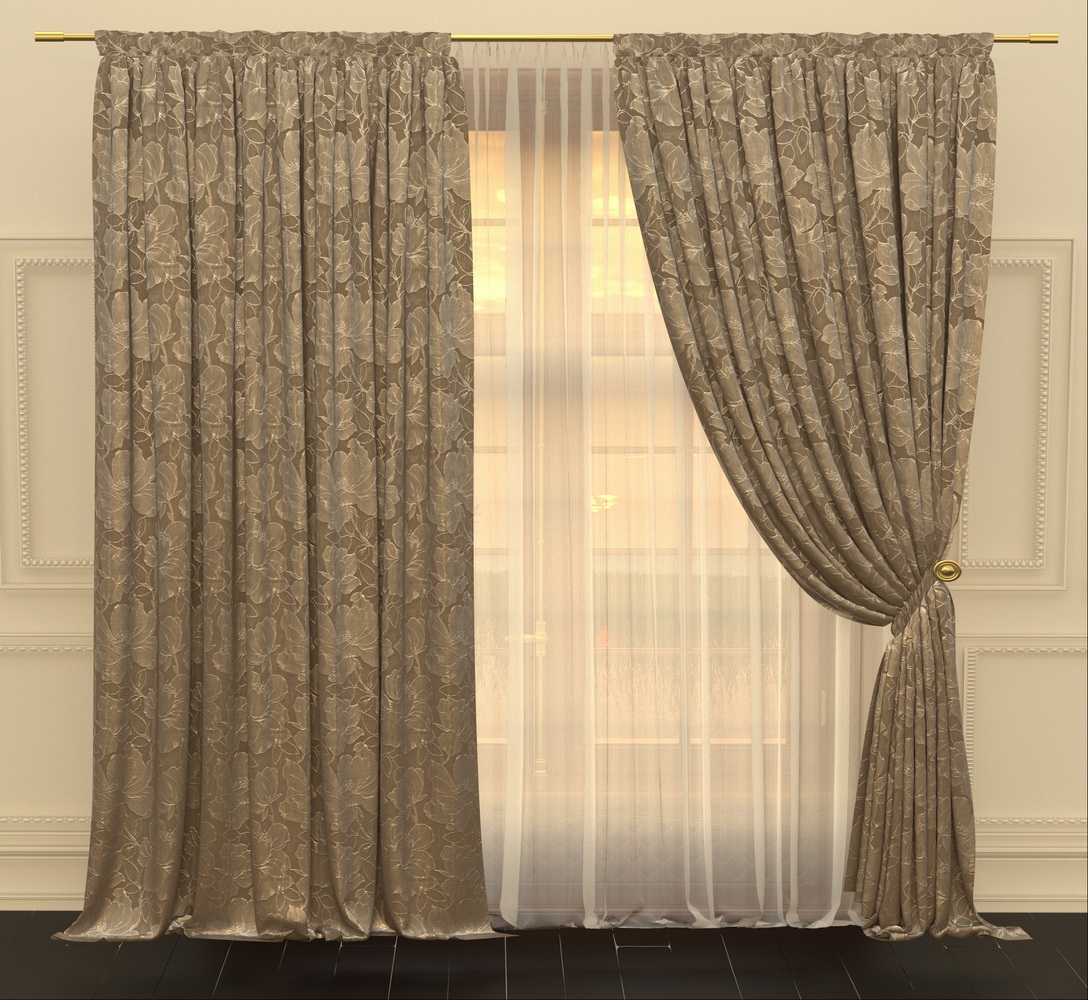 4. Качественно смоделированы: Карниз, тюль, шторы, детали подвеса штор