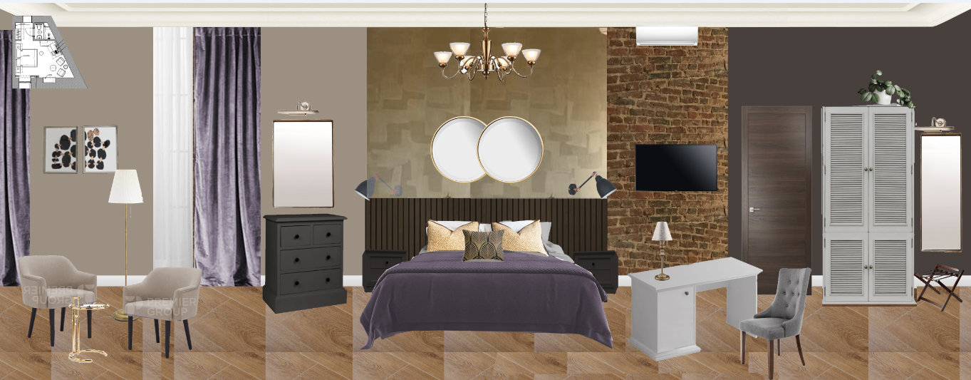 Требуется выполнить визуализацию 2 номеров отеля. Сроки 2 недели (до 20 января). Площадь общая 46,9м2. Качество как во вложении или лучше.