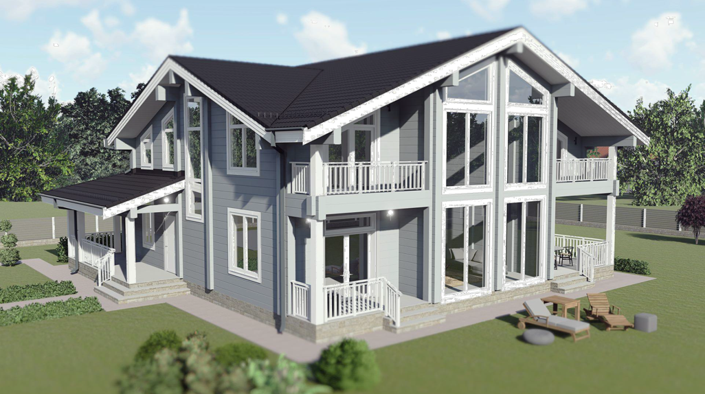 Мы компания занимающаяся безрамным и панорамным остеклением различных объектов. Есть объект где заказчик хочет видеть визуализацию наших систем и конструкций стеклянных ограждений на доме. Будет слайдерная система панорамного остекления на двух террасах первого этажа и стеклянные ограждения на трех балконах второго этажа.
