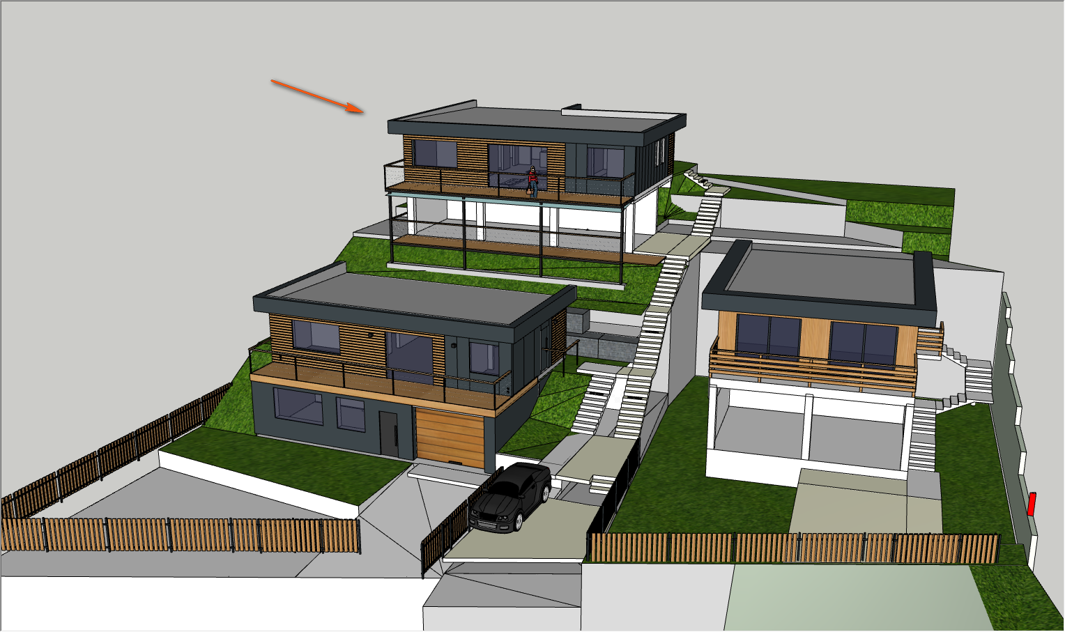 Есть готовая модель в скетчапе. Нужно добавить немного зелени, наложить текстуры и отрендерить 5 ракурсов.