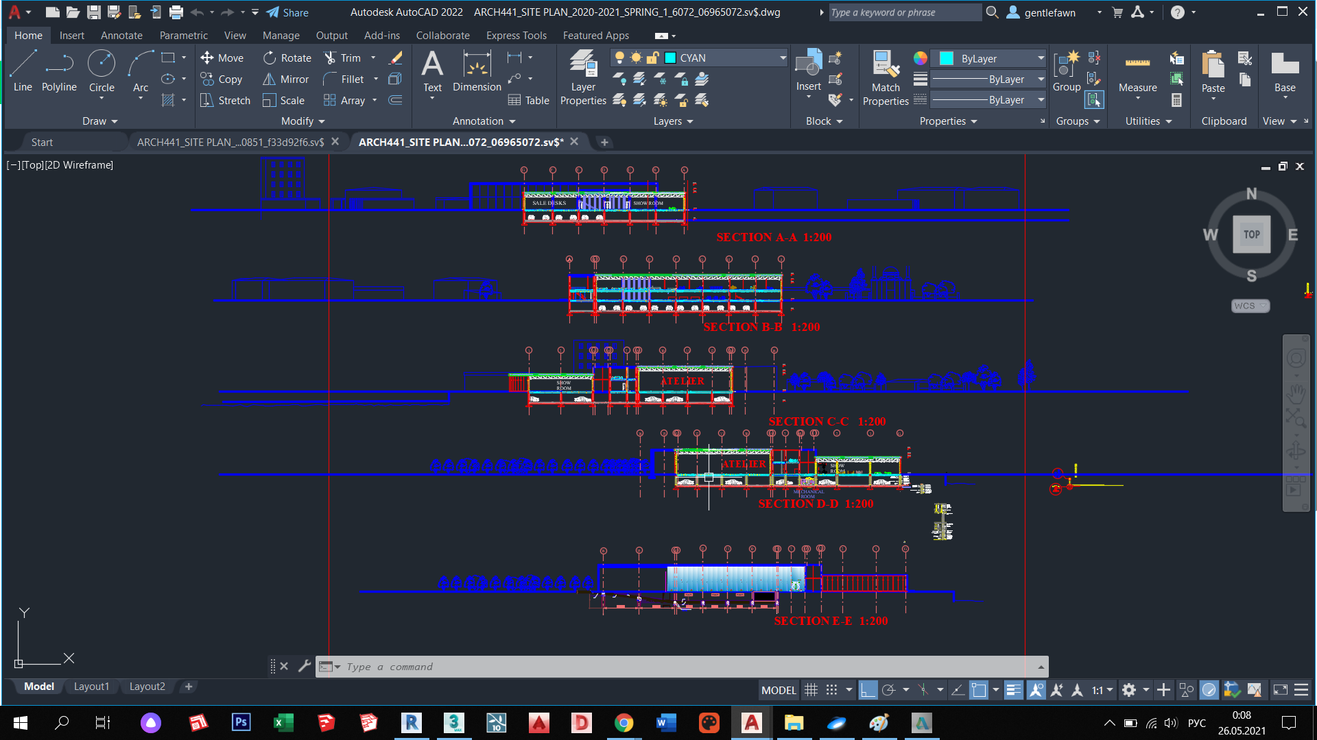 Проект "Шоурум и ателье мебели". Планы, виды сбоку и разрезы готовы, нужно закончить детальные чертежи.