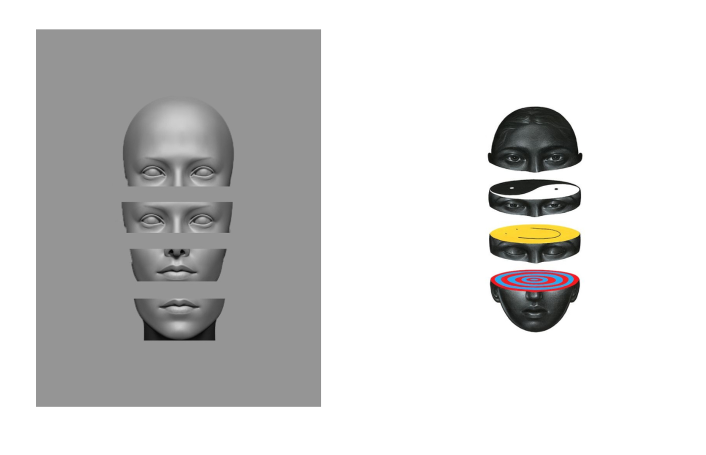 Необходимо сделать три разные 3D модели абстрактного лица. Для будущей скульптуры. Референс прилагаю.