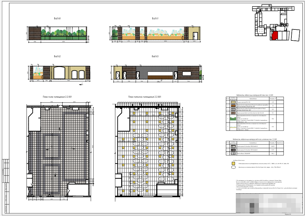 Моделька самой школы в ревите есть. Проект чисто технический, на одном листе располагаются план пола, план потолка и развертки с ведомостью (это весь состав чертежей)