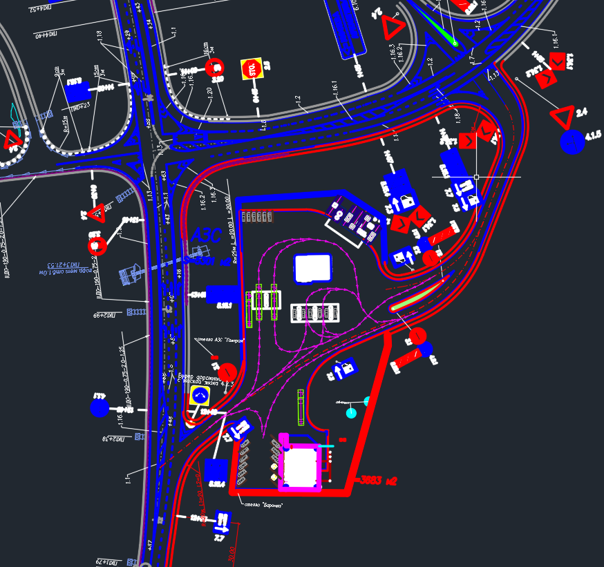 Необходимо сделать визуализацию комплекса АЗС + Кафе.