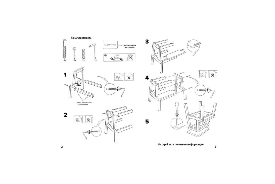 Нужно сделать схему сборки для табуретки стремянки копии икея. Желательно в корель +илюстратор, чтобы смотрелось приятно и по человечкески