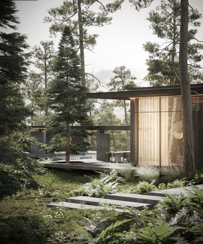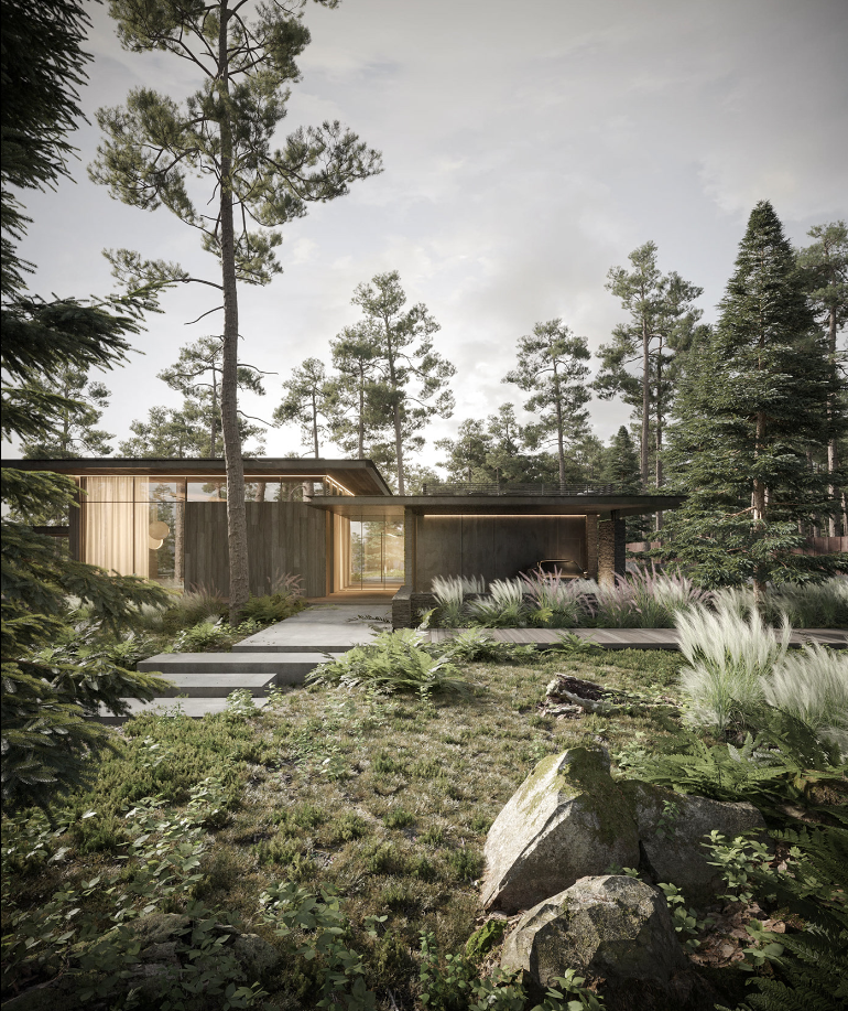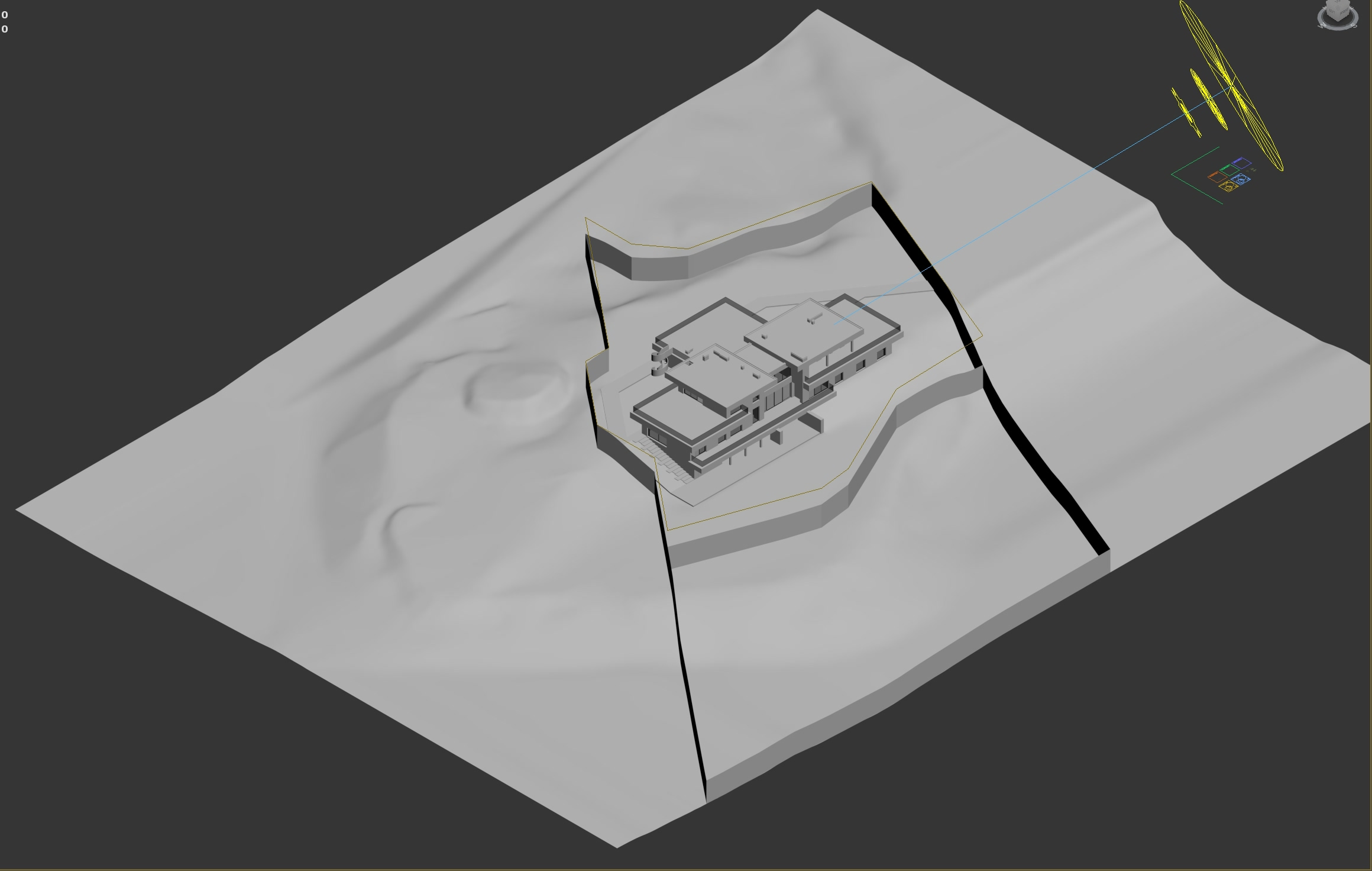 В сцене уже готовый рельеф, на который нужно наложить Forest pack.